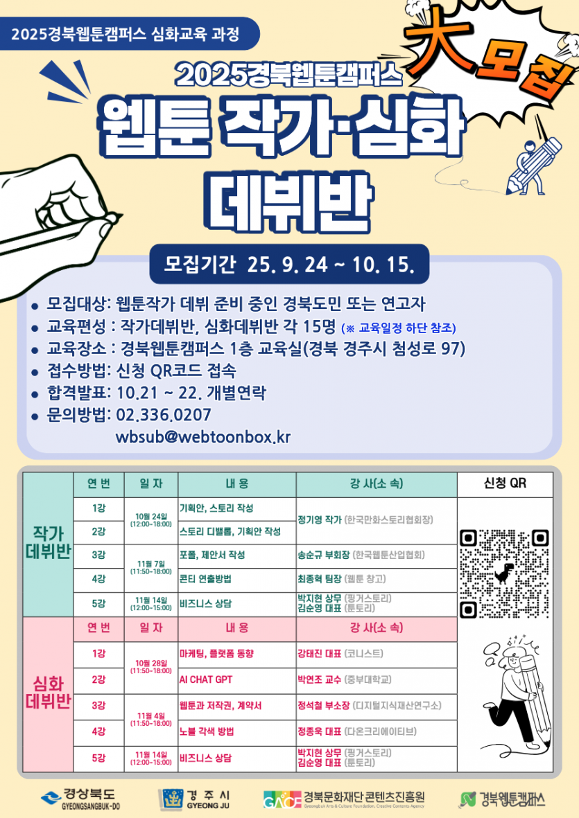 *모집대상 : 웹툰작가 데뷔준비 중인 경북도민 또는 연고자